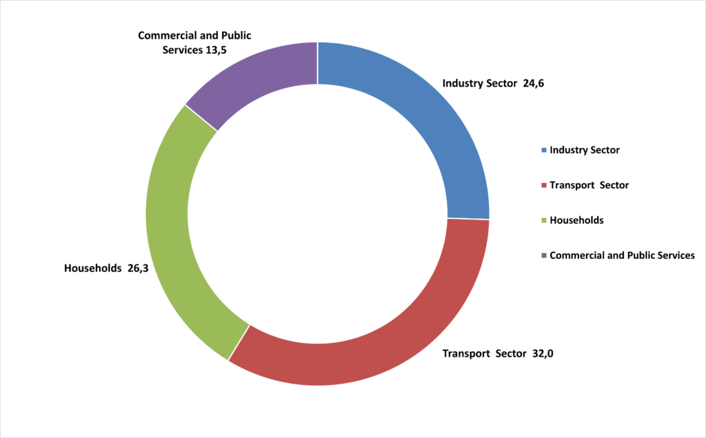 9.10 Final energy consumption by sector in EU27 , 2023 ( % of TOE)