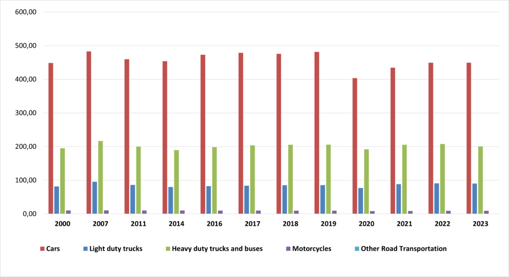 9.2 CO2 emissions from Road transport in EU 27, 2000-2023 ( Million tonnes CO2 equivalent)