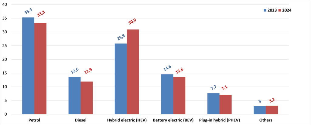 9.5 Fuel market share for new car registrations in EU, 2023-2024
