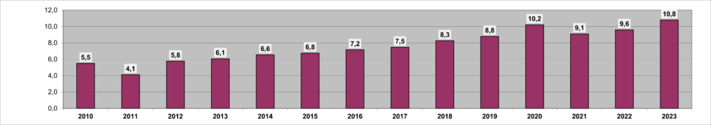 | 2022 | 2023 | Evolution 2022-2023 | |