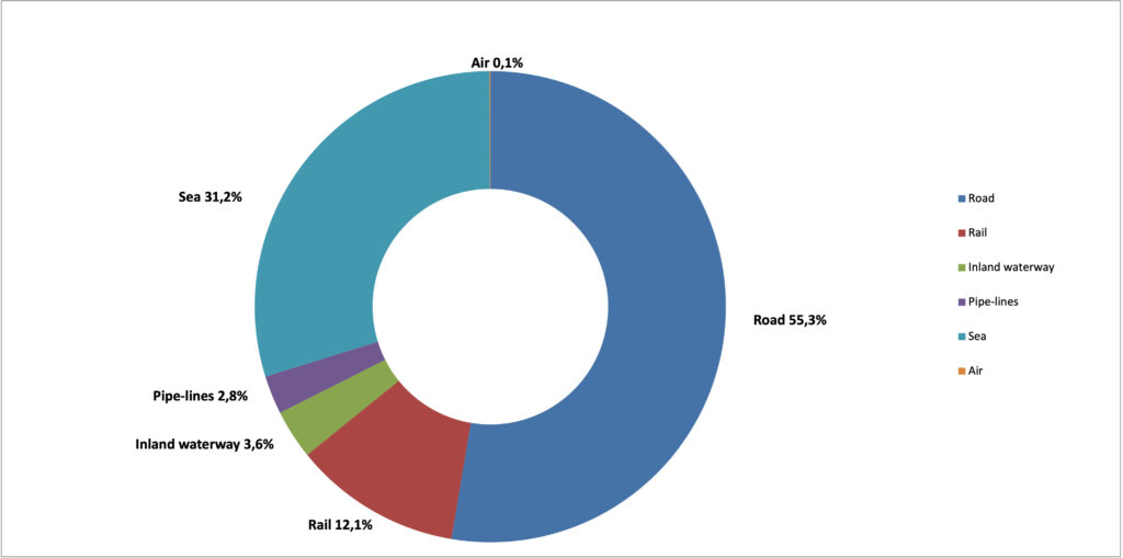| Road | Rail | Inland waterways | Pipelines | Sea | Air | |