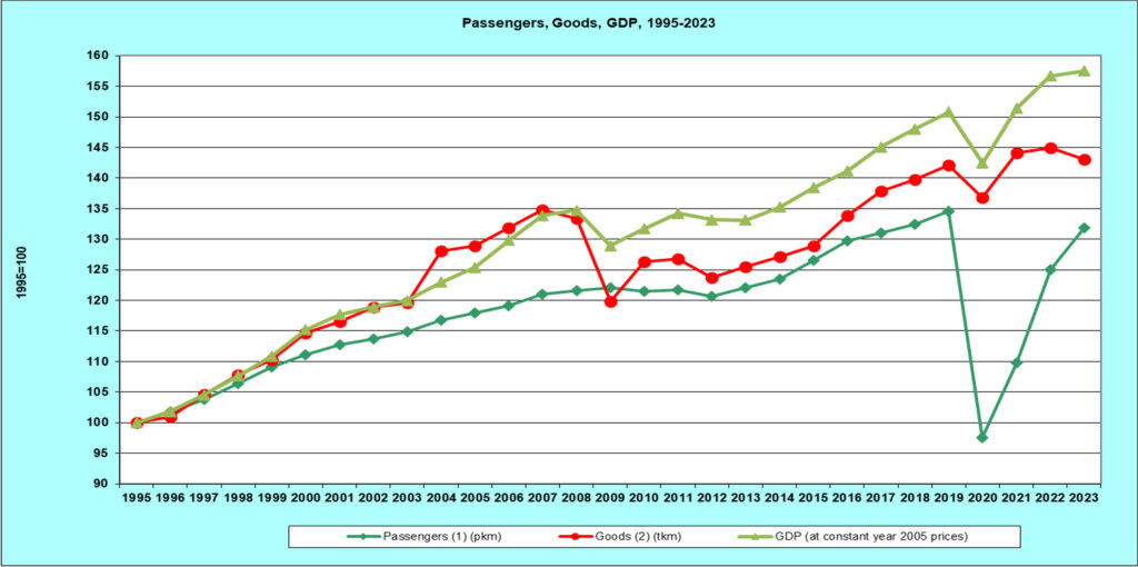 1.2 Transport growth in EU 27, evolution 1995-2023