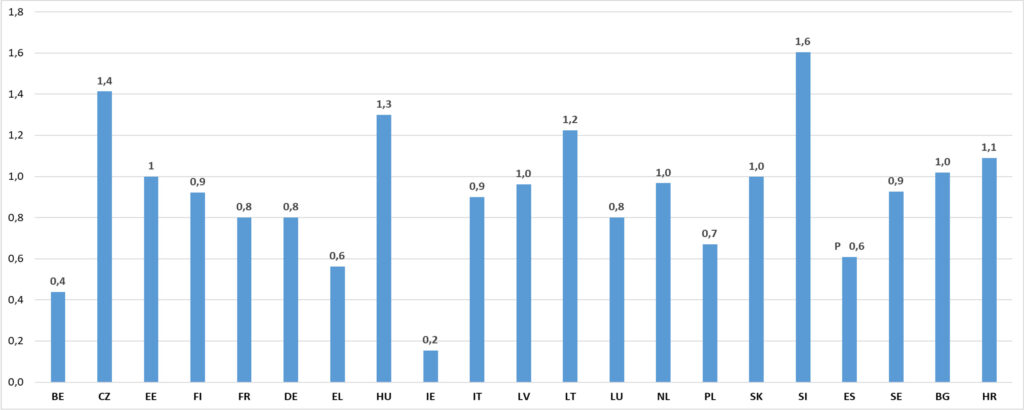 no data for PT, RO,CY,EL and SI and as from 2019 no data for DK and LU