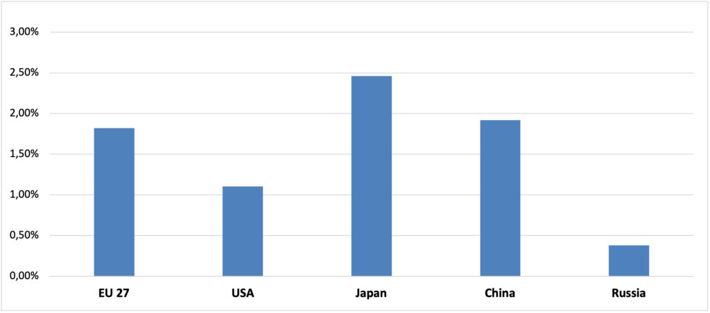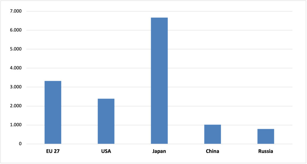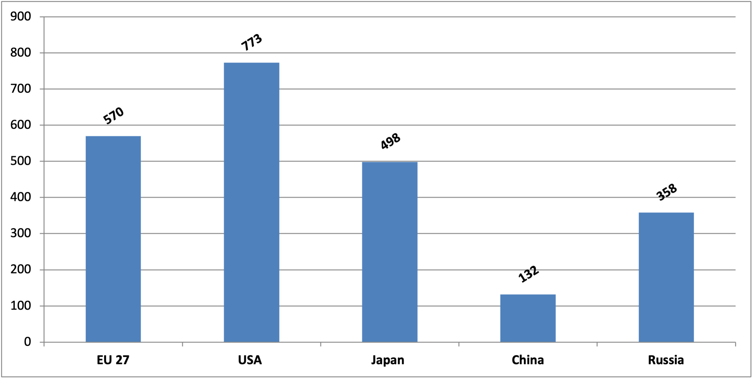 | EU 27 | USA (1) | Japan (2) | China | Russia(3) | |