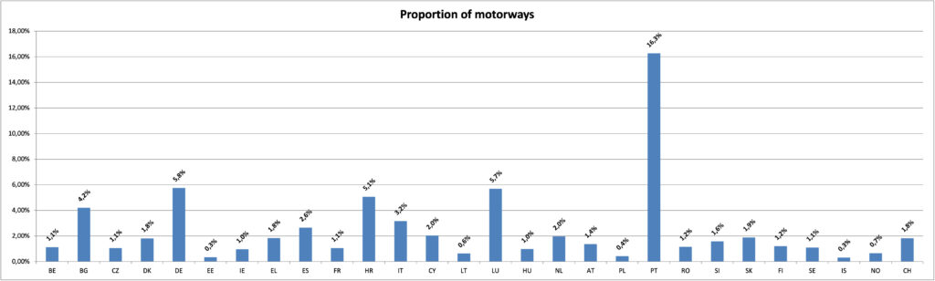 **: the definition of road types varies from country to country, the data are therefore not fully comparable. CY: other road network includes forest gravel roads.
